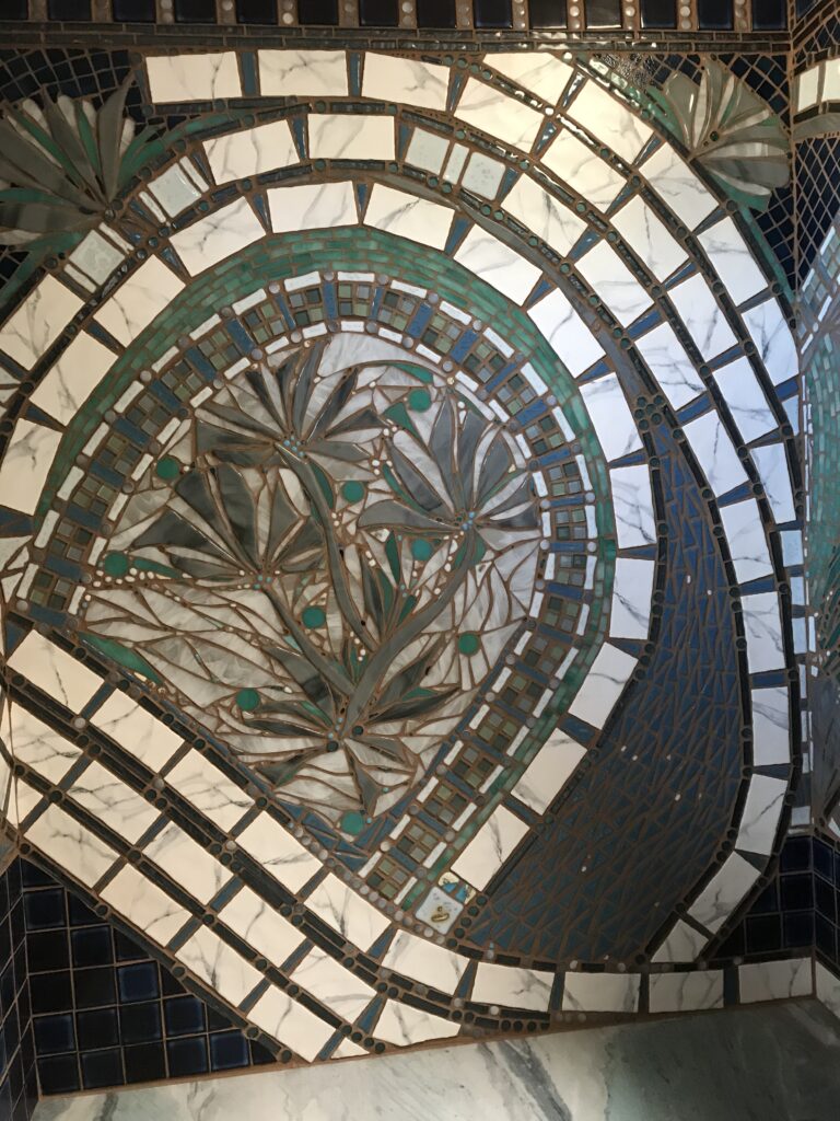 Her portfolio includes architectural mosaics, fine art panels, community-based artworks, and thematic series—such as We Are Water—that explore our connection to the world around us.