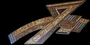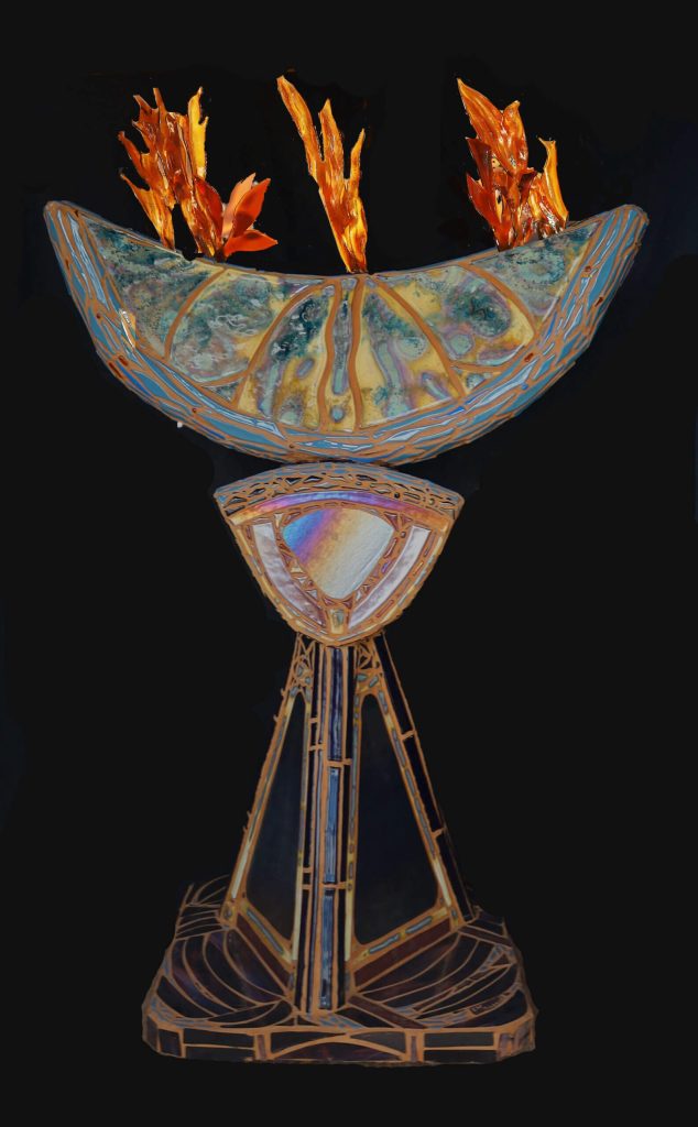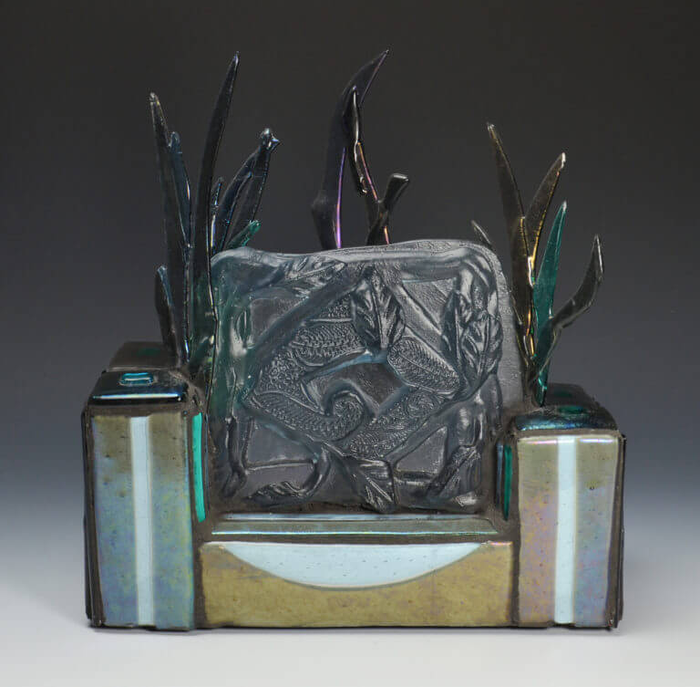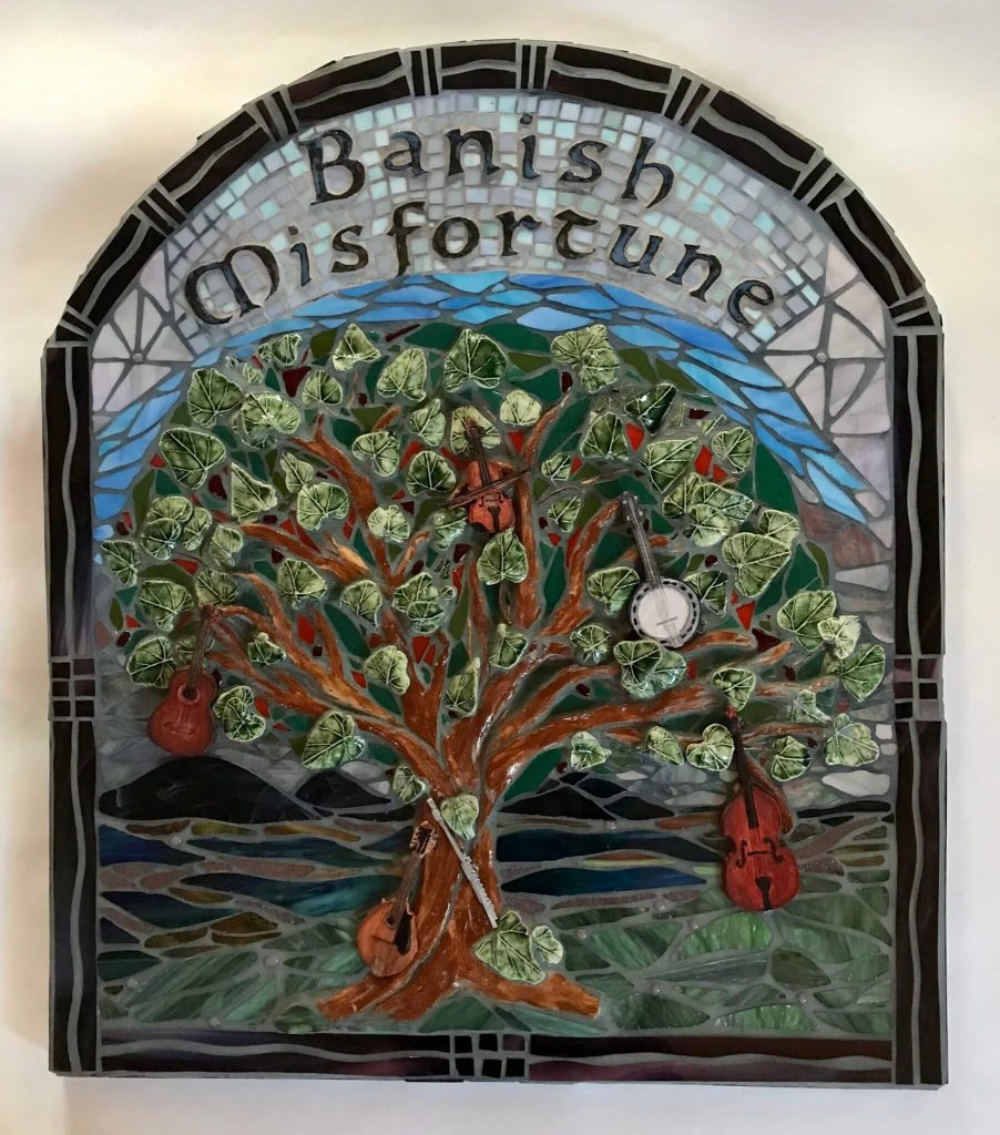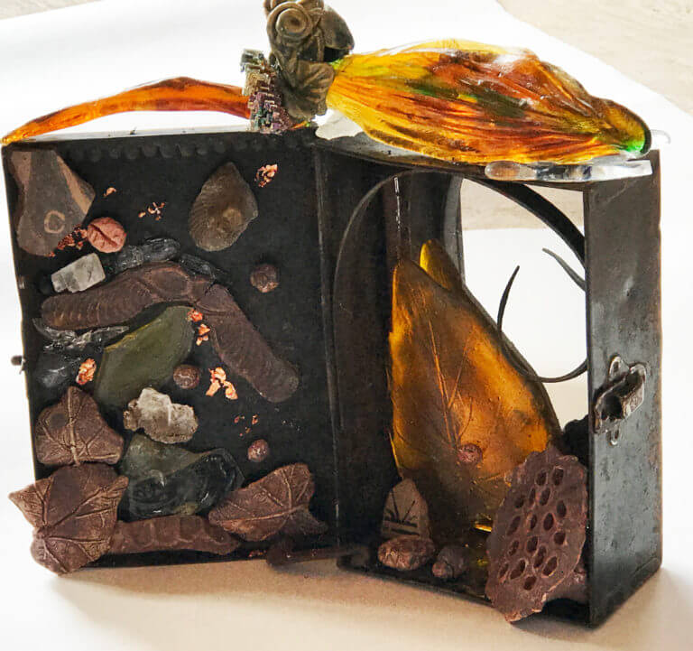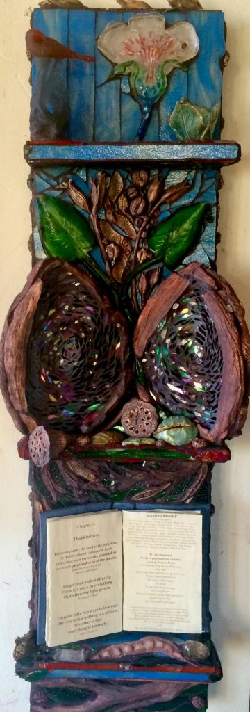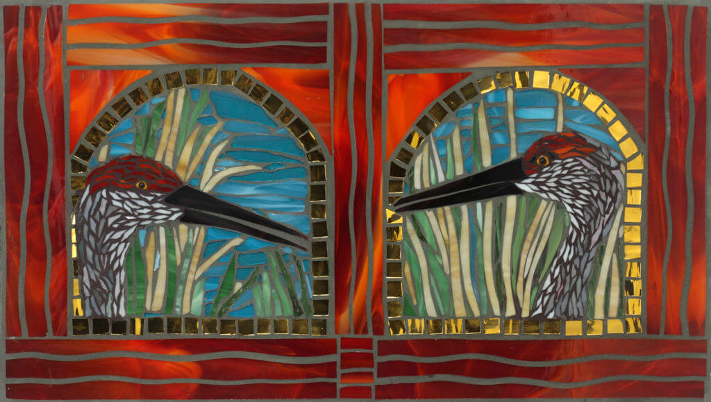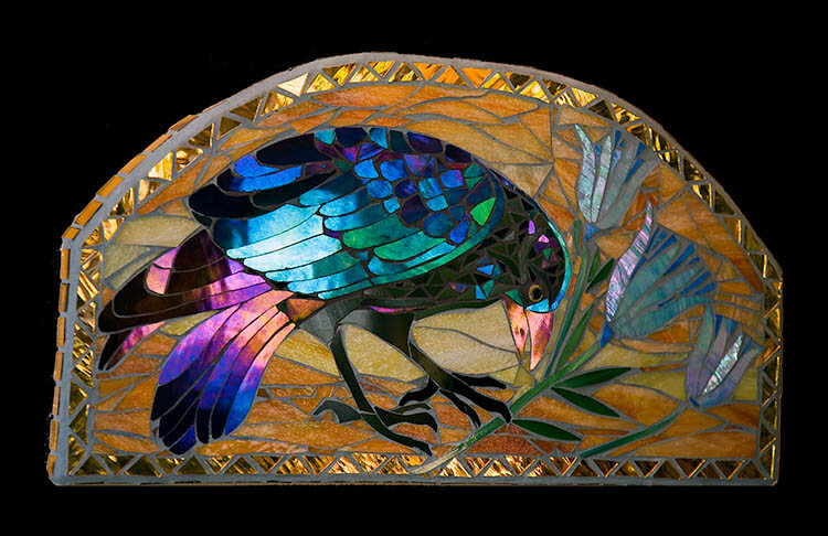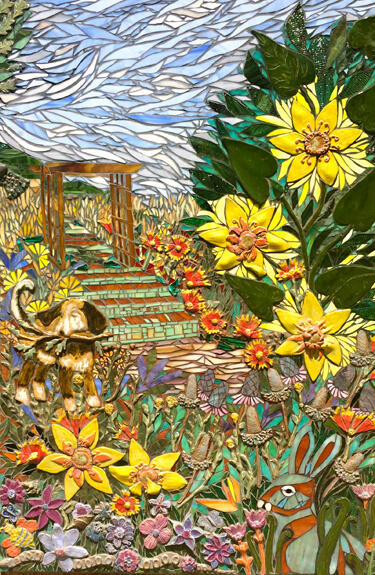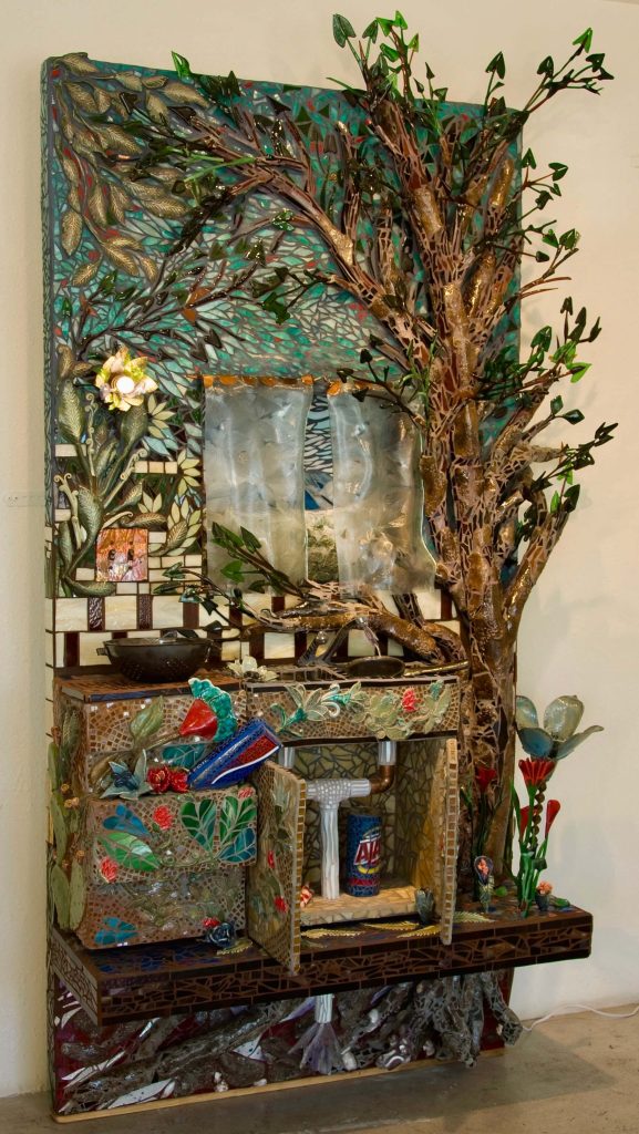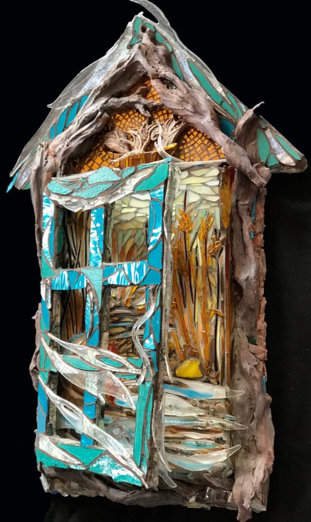 Using a mosaic as an illustration, Laura retells and reimagines her childhood stories through a lens of personal wisdom. Dreams, insights, and teachings take on a storybook form, honoring mystery, the unknown cosmos, nature, and heart. Pieces of uniquely formed clay join with cut, fused, and slumped glass to create the mosaic images. The series was displayed at Wild Hearts Gallery, Placitas, NM, during the month of October 2025.