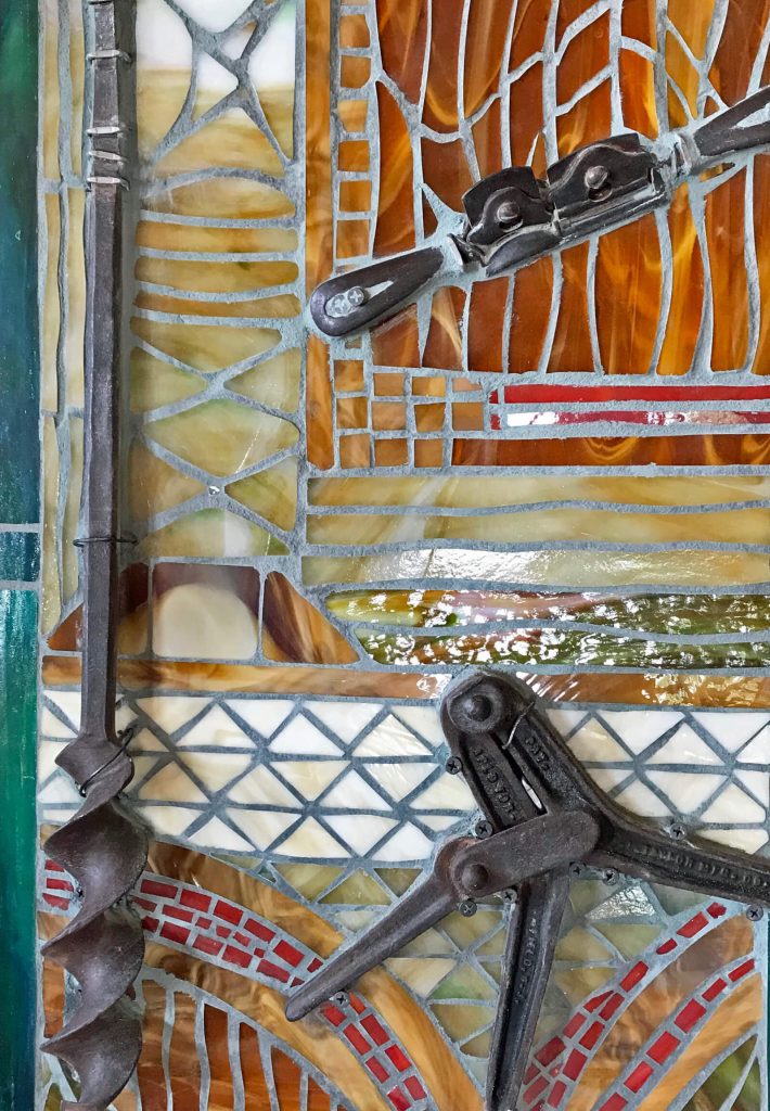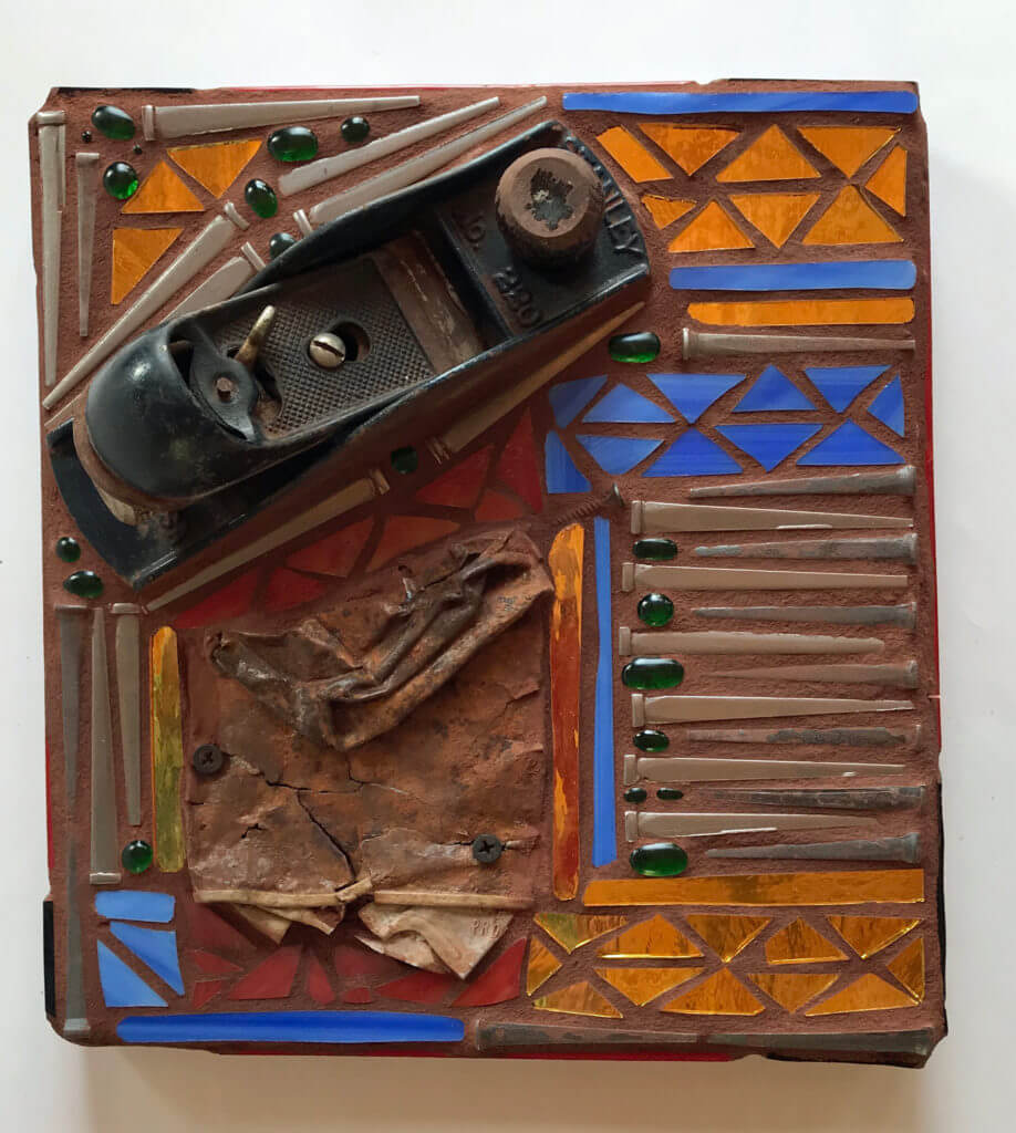 Old tools and found objects have a beauty of their own. No longer functional or perhaps discarded, human made or nature’s gift, Laura appreciates the forms which inspire the integration of mosaic design.