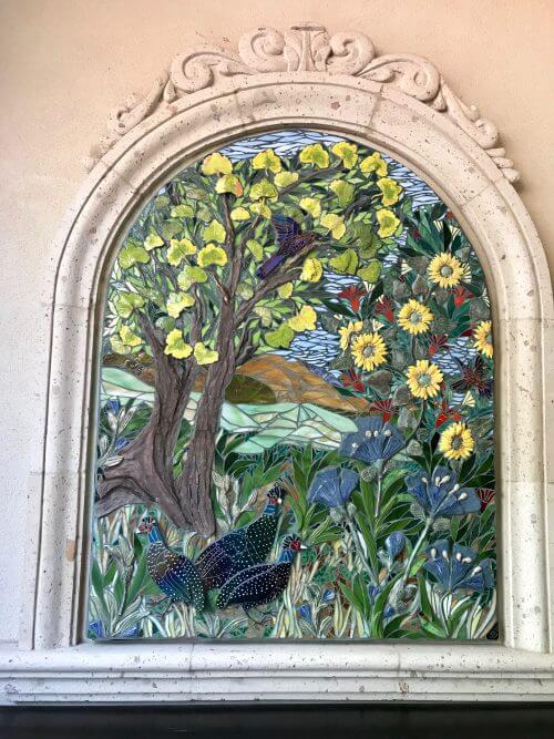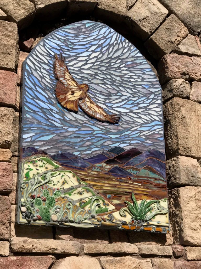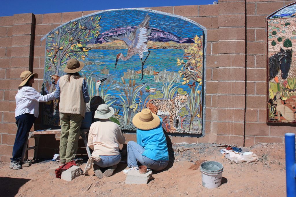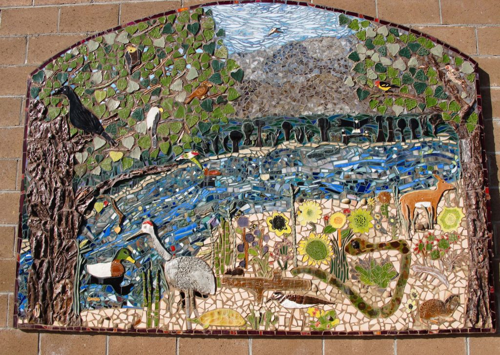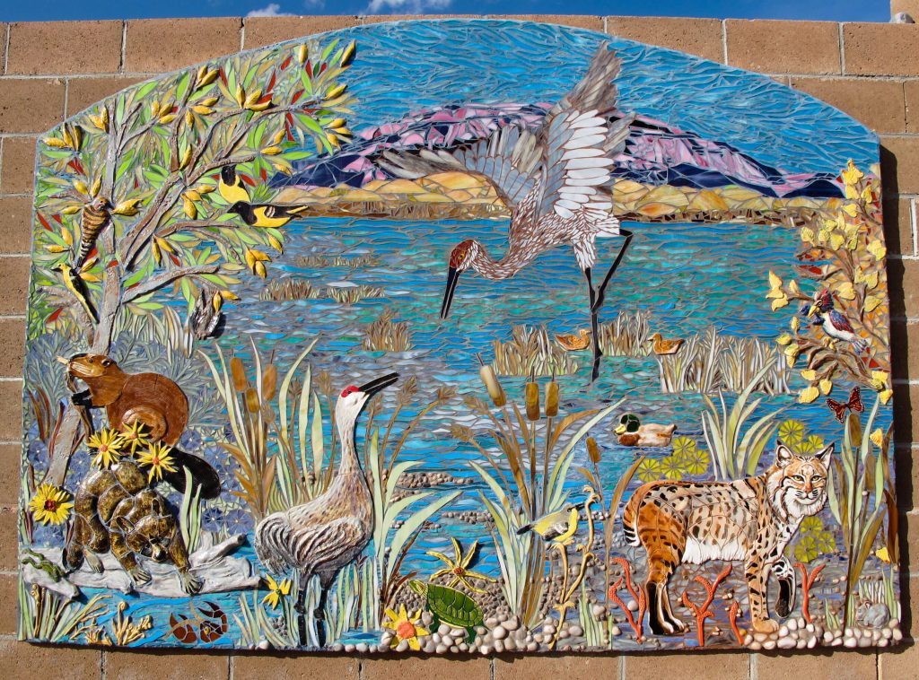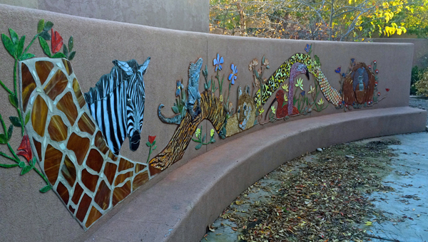 Laura has created mosaic pieces for the Albuquerque Bio Park and other businesses and public venues. Some of the murals are dedicated to honor volunteers or donors honoring loved ones.