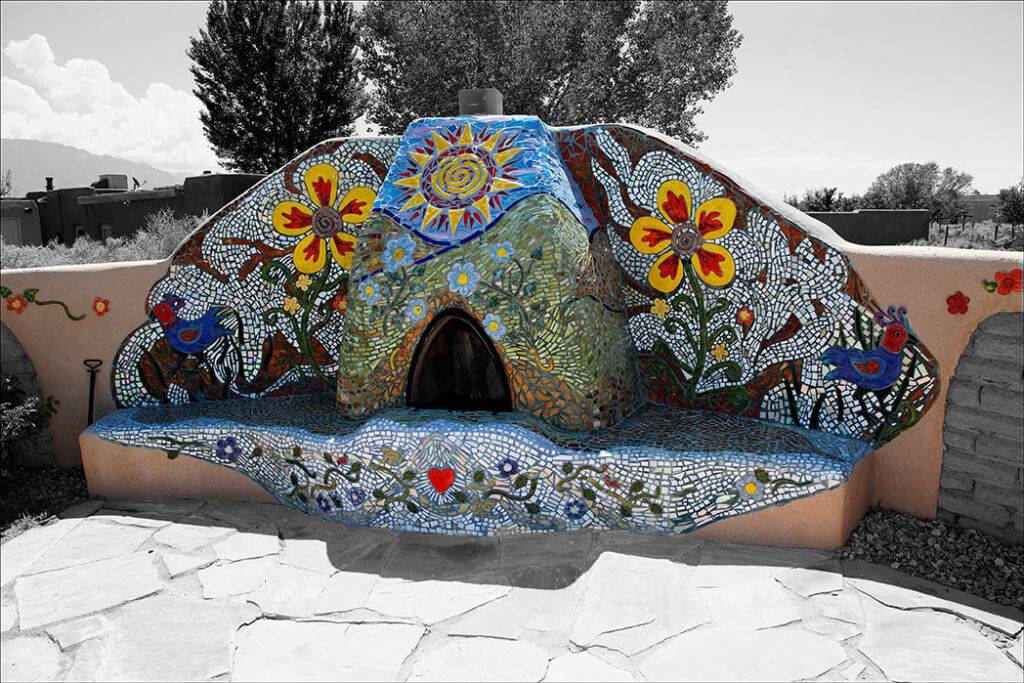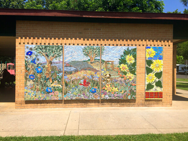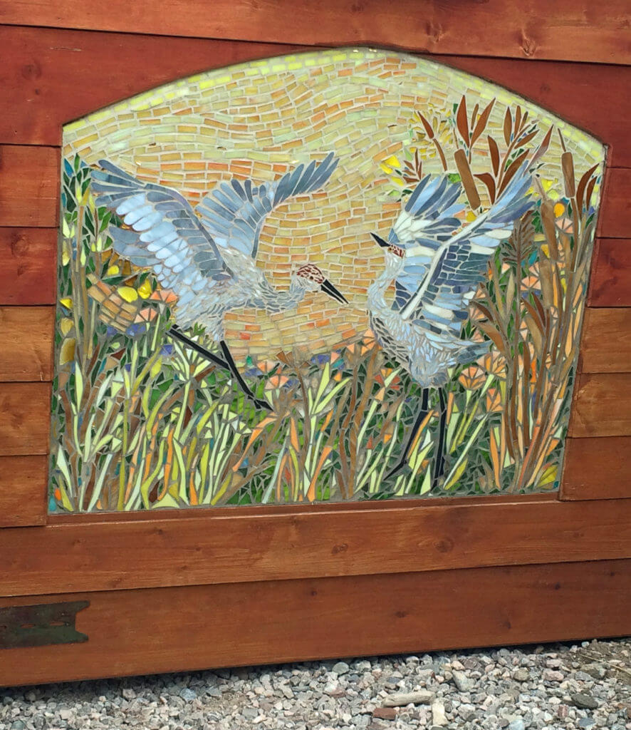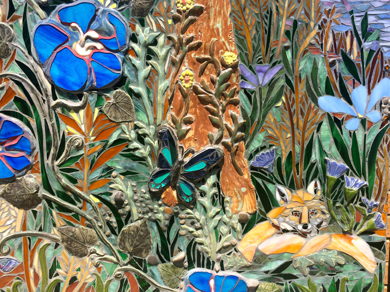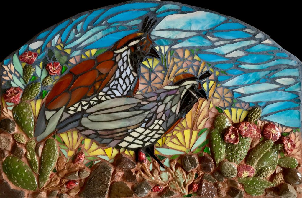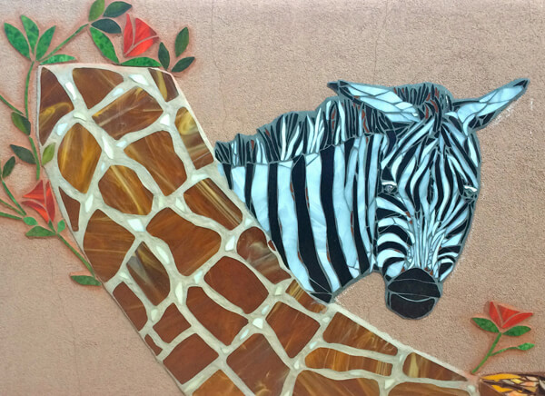 Laura has created mosaic pieces for the Albuquerque Bio Park and other businesses and public venues. Some of the murals are dedicated to honor volunteers or donors honoring loved ones.