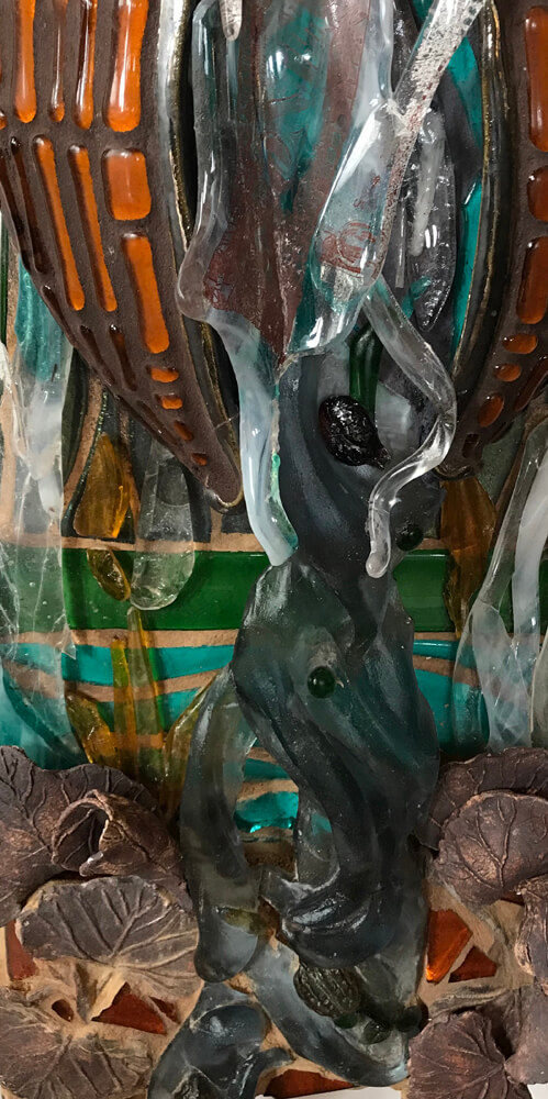 The simple elegance of cast glass, so different from the details of intricate mosaic work, has been briefly visited. Laura will spend more time with this process, which allows for glass sculpture and the translation of clay form into glass.