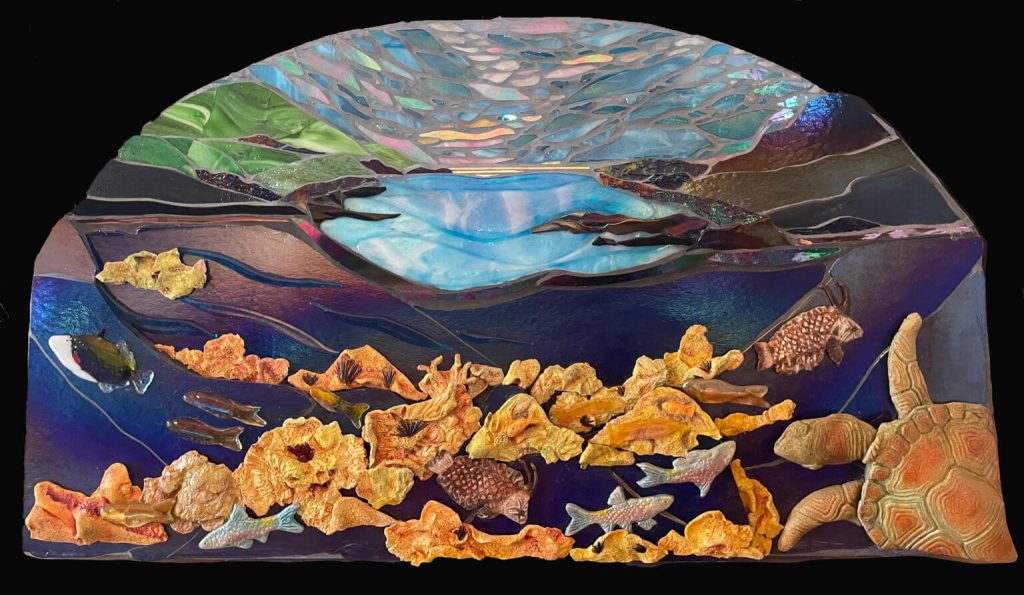 Water imagery is a recurrent exploration. Living in the high desert, Laura appreciates and honors this source of life. Rain, aquifers, snow melt, streams, and rivers allow all to live in the high desert home of New Mexico. During the last ten years, she has also spent time in Hawaii, which feels like a second home. The vastness of the ocean humbles her, and the life of the reef is a never-ending joy and wonder.